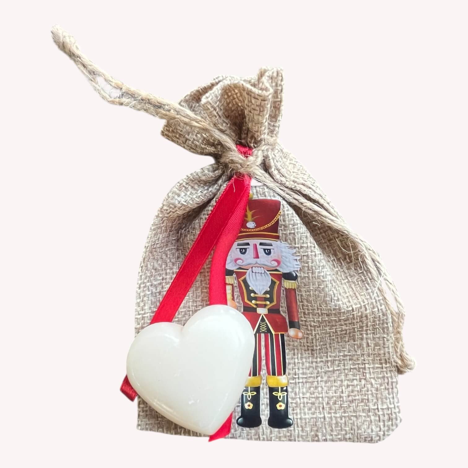 🧼 Een heerlijk geurig Frans hartenzeepje in een kerstjute zakje.