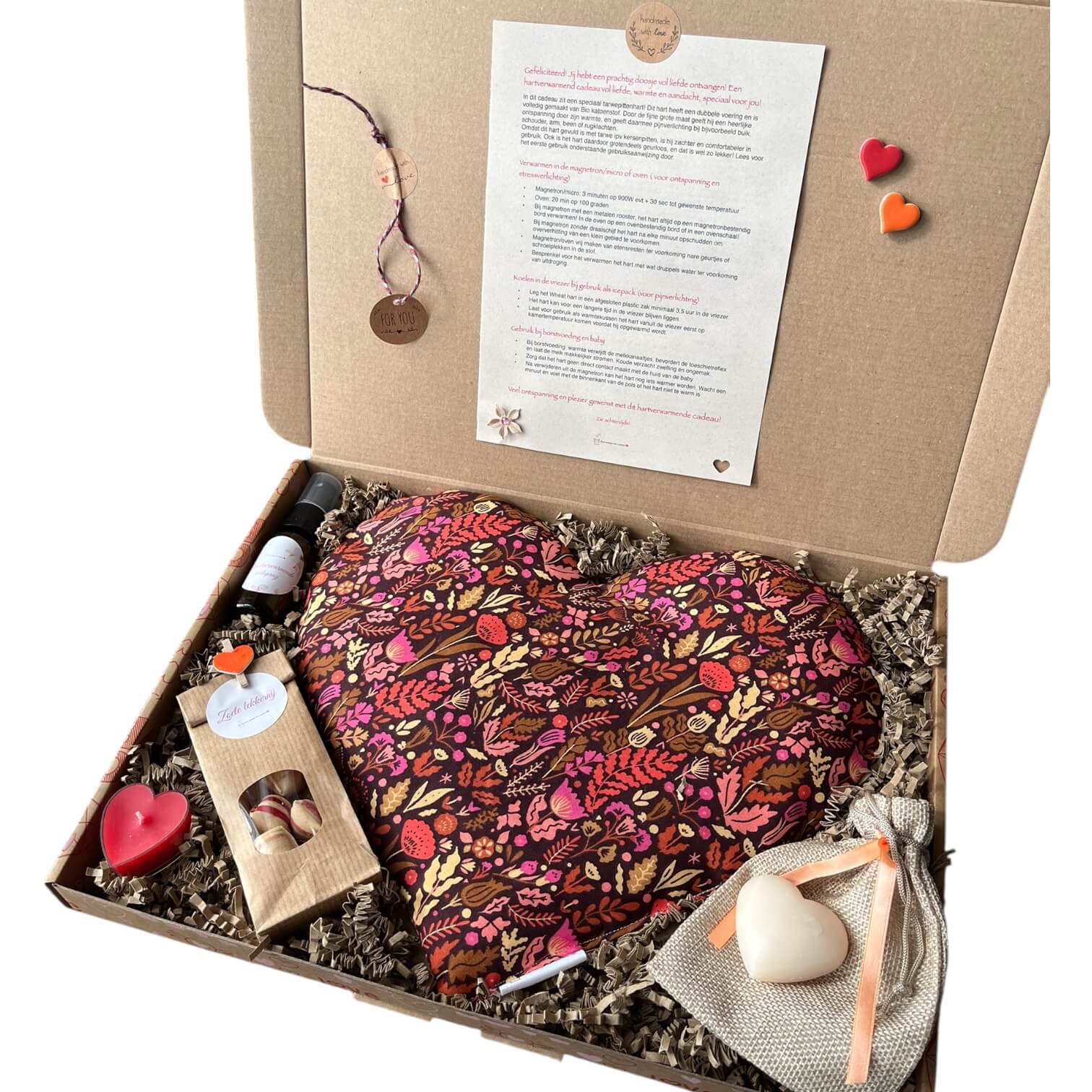 • Een prachtig XL tarwepittenhart  – te verwarmen, verkoelen of gewoon mooi ter decoratie.