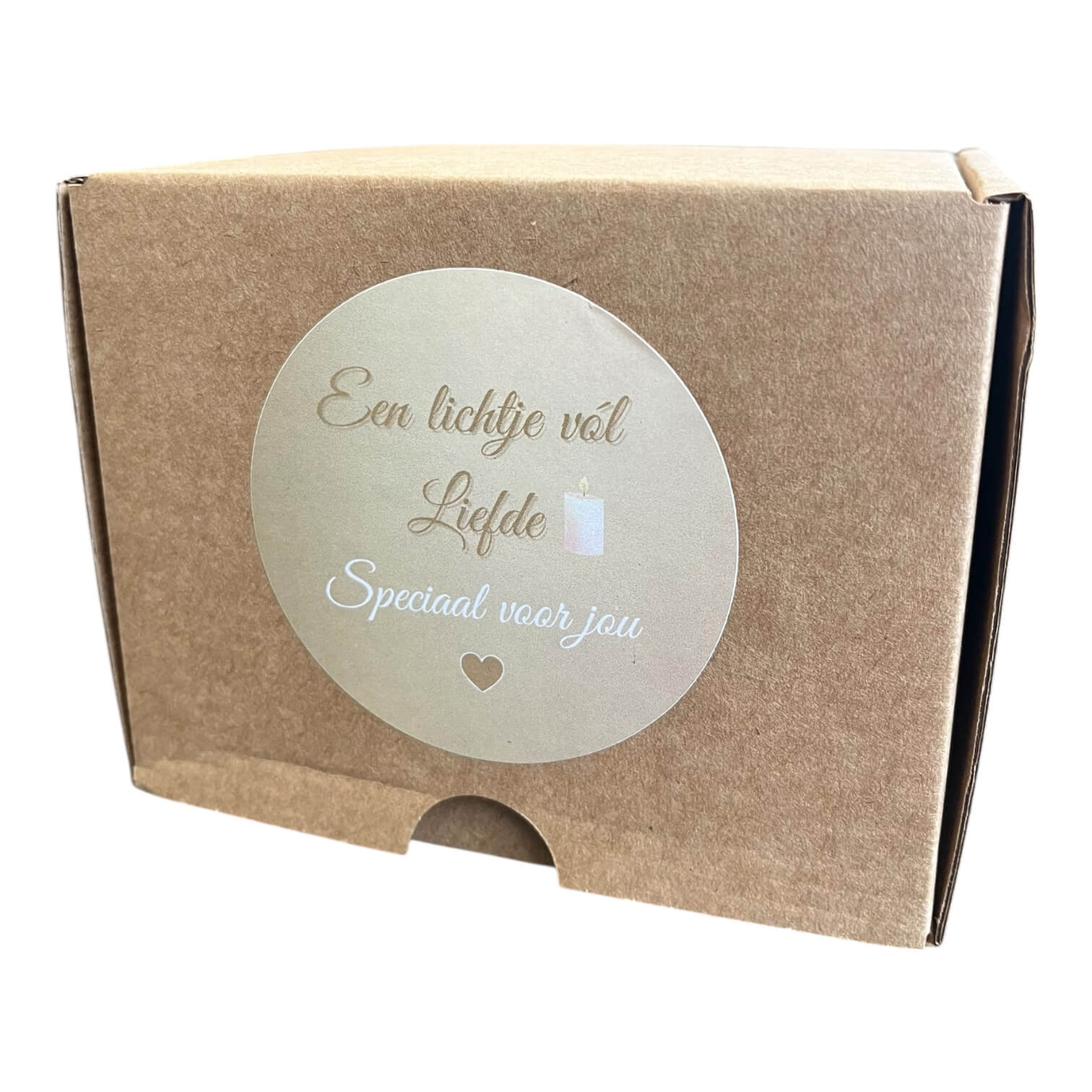 En natuurlijk mag een luxe kaart niet ontbreken, speciaal ontworpen in het thema Een Lichtje vol Liefde. Laat bij je bestelling een persoonlijke boodschap achter, dan schrijf ik deze met de hand op het kaartje. ✍️ Zo wordt jouw cadeau nóg persoonlijker.