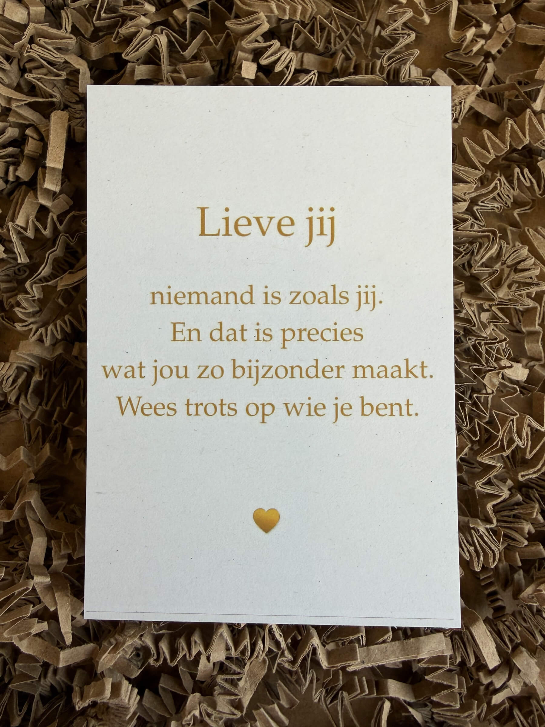 ⢠verpakt in een mooi doosje met een warme tekst aan de binnenkant